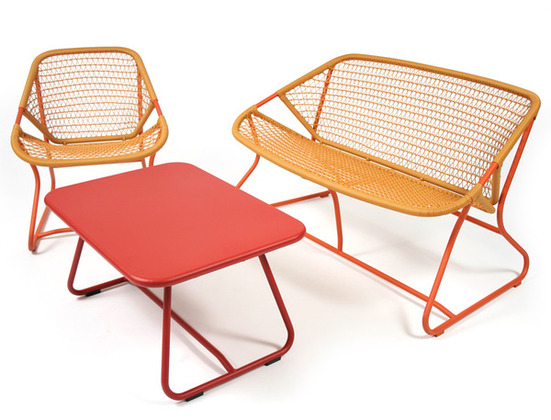 La collection Sixties de Frédéric Sofia est réalisée en Aluminium. La marque Fermob utlise des matériaux recyclables et recyclés. Ces modèles existent en différentes couleurs (aubergine, gris orage, savane, paprika). J’aime son look retro. Collection « Sixties » de Frédéric Sofia chez Fermod, 415€ la banquette.